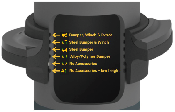 Choose the Fully Assembled Strut option to have us do the assembly for you. We will assemble them with new top mounts and ship them to you ready to bolt in. Simply put what clip settings you want in the order notes, and we will assemble with those settings. If you want to account for “Tacoma Lean”, specify the driver side clip setting to be one position higher than the passenger side. If you are unsure what to specify, please contact the Sales team for expert guidance before ordering. Note: If no clip setting is specified, we will assemble both in the 2nd position from the bottom.